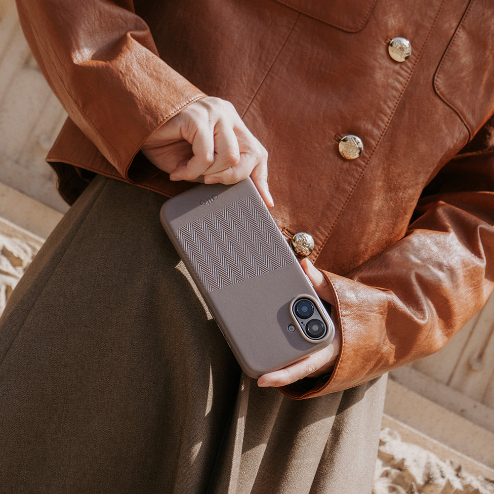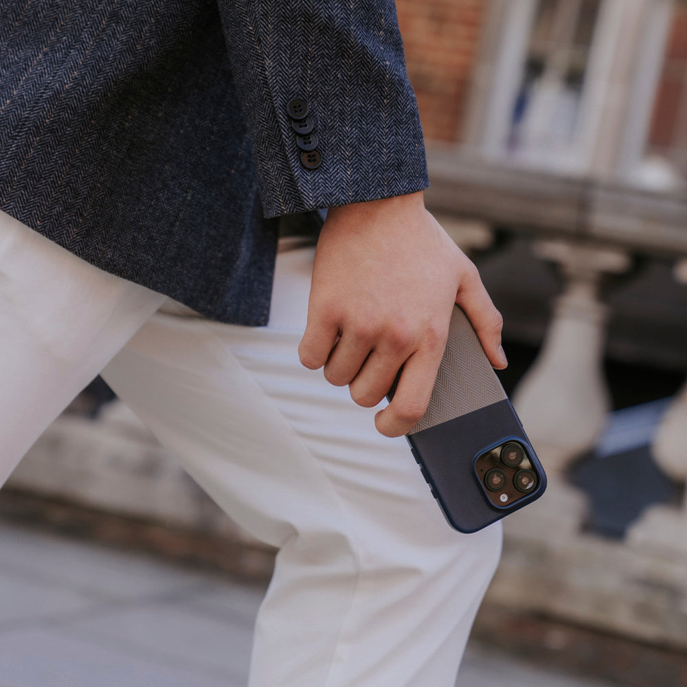 ヘリンボーン パターンのビンテージ デザインと MagSafe 機能のサポートを組み合わせることで、時代を超えたエレガンスと現代的な利便性の両方を実現します。