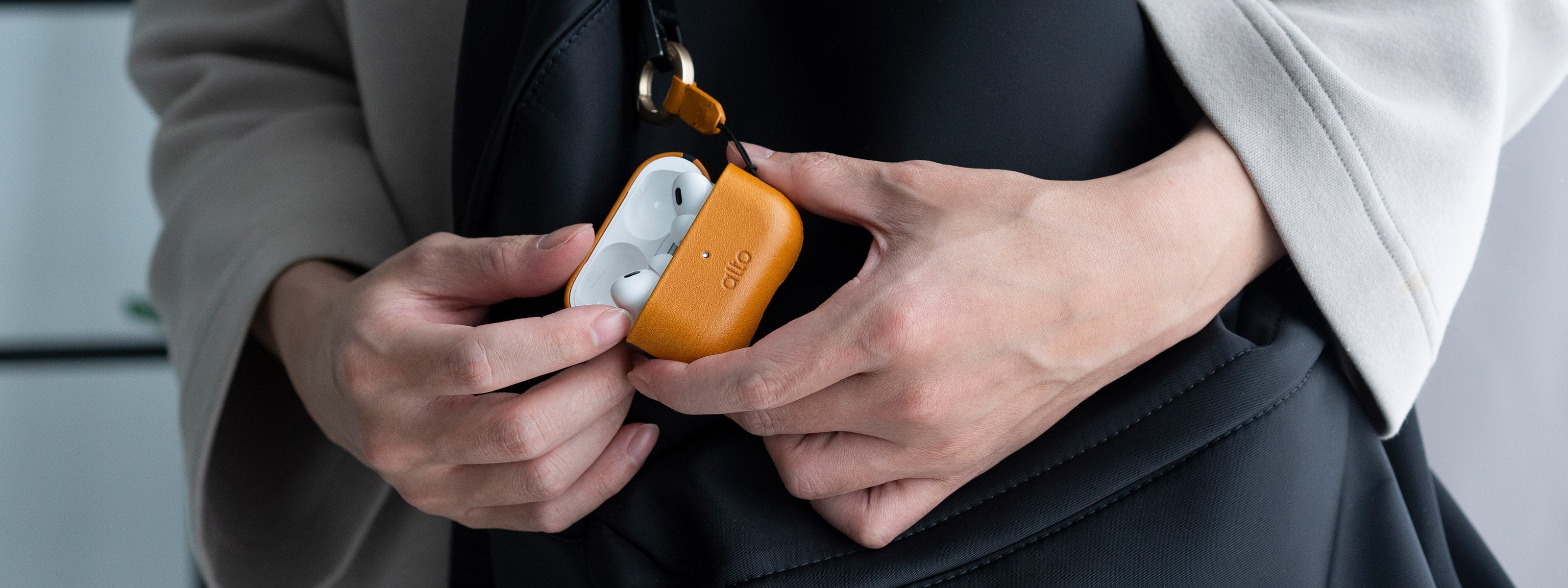 美しいイタリア産フルグレインレザーを使用した軽量レザーケースは、AirPods Pro 2をエレガントなスタイルでしっかりと保護します。取り外し可能な留め具が付いているので、バッグやウエストベルトに簡単に引っ掛けて固定できます。