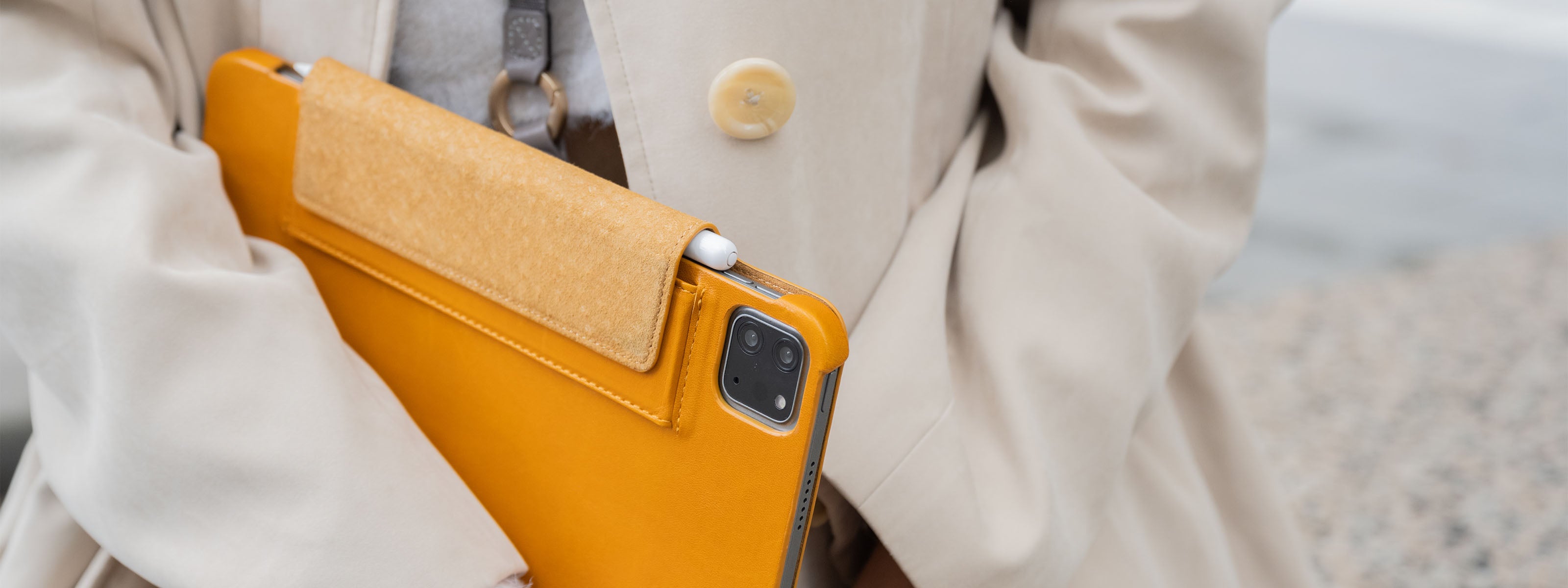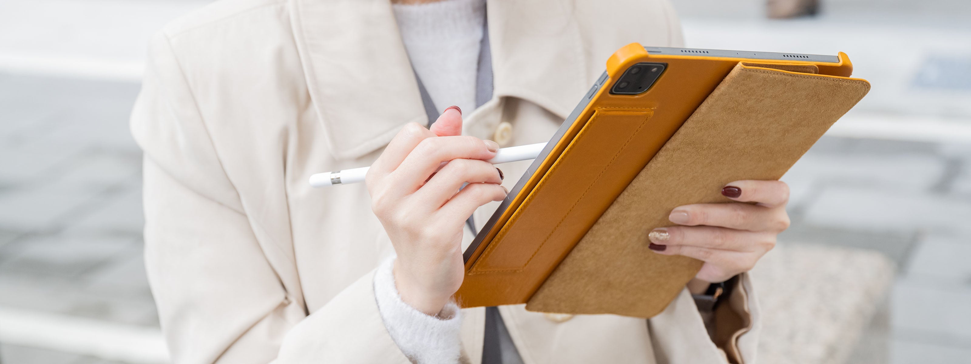 スリーブの前面カバーにはApple Pencilを安全に保持するフラップが付いており、持ち運びが簡単です。