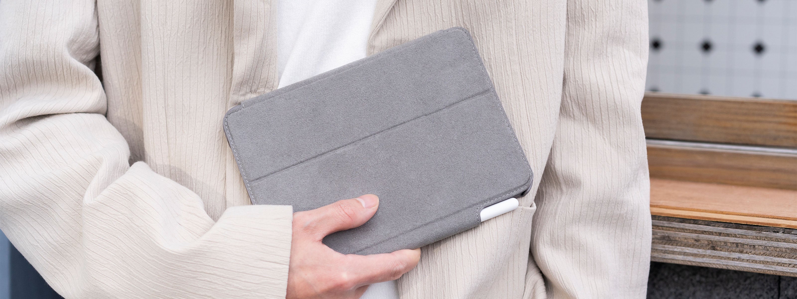 スリーブの前面カバーにはApple Pencilを安全に保持するフラップが付いており、持ち運びが簡単です。