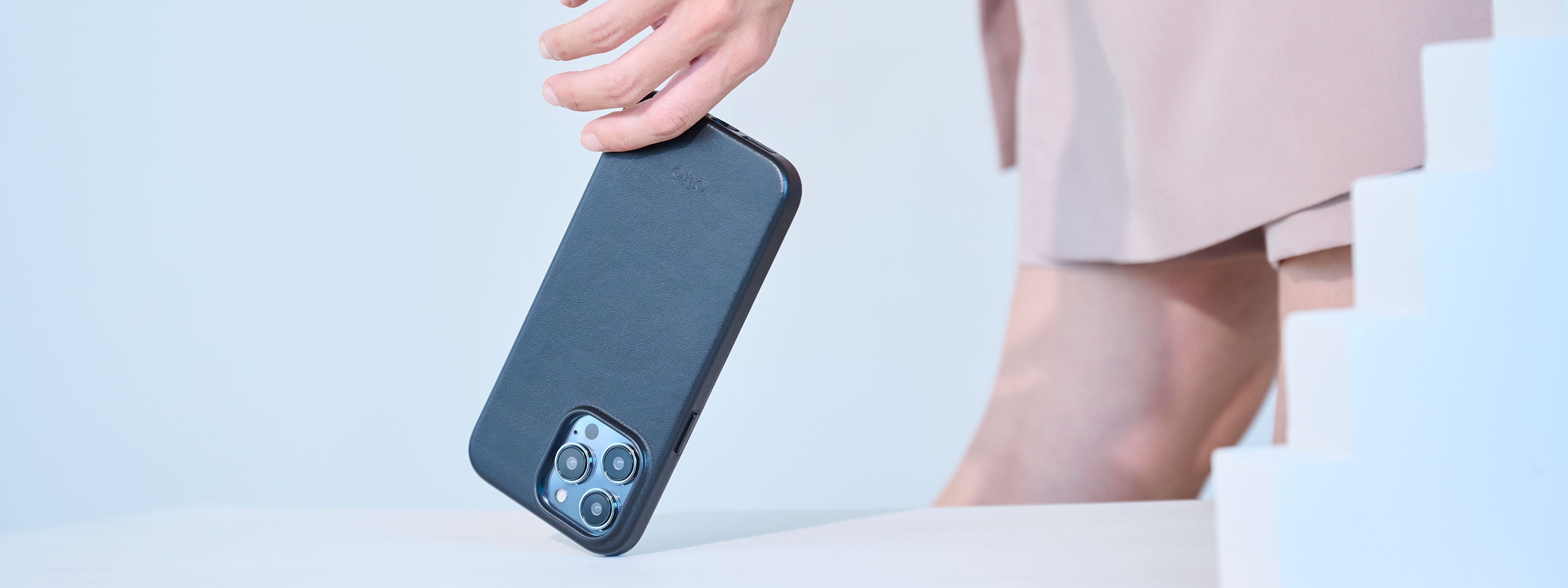 イタリア産レザーのカバーは、極上の手触りです。超薄型でありながら、iPhoneを落下から完全に保護します。