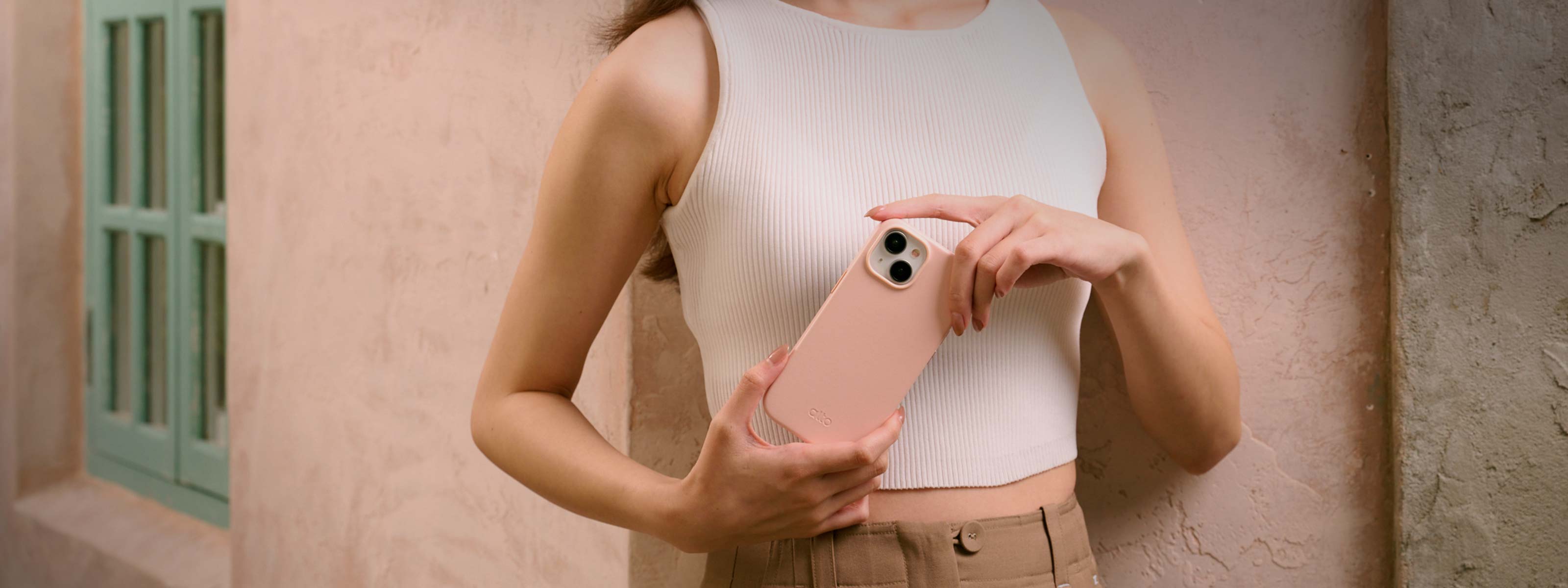 iPhone 15シリーズClop Magsafe Leather Case-ミスティピンク