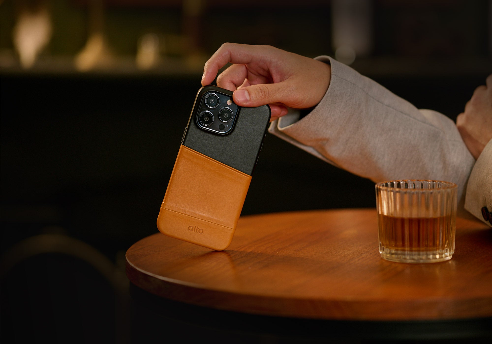 Alto のフルグレインアニリンレザーは、イタリアの革職人の技を駆使し、革の毛穴、繊細な古色、独特の模様を保ちながら、美しく自然な外観を実現しています。