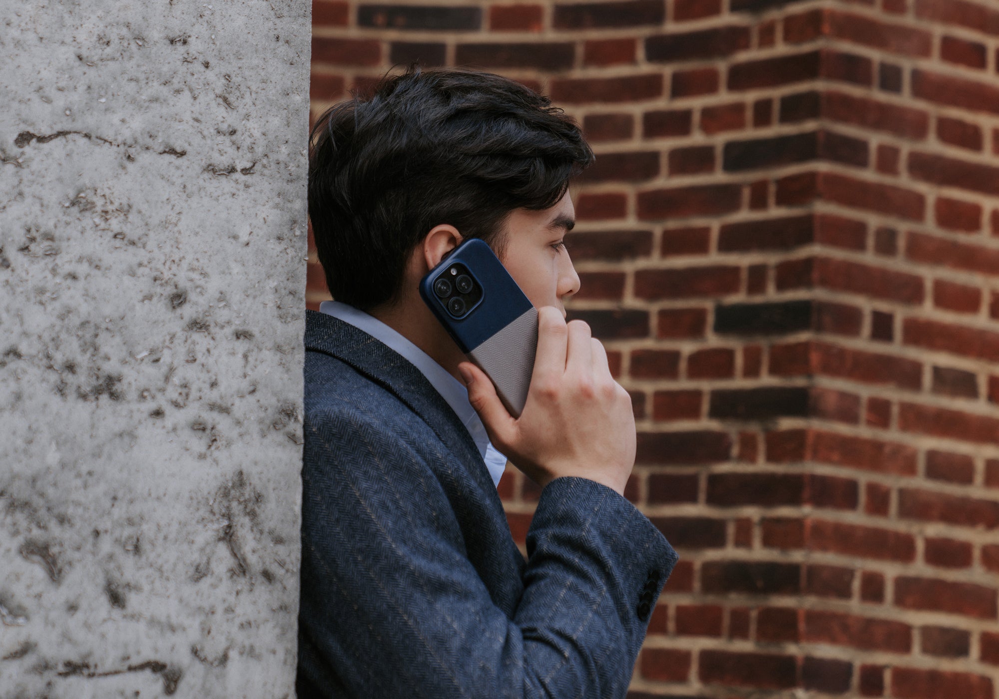 iPhone 16シリーズニシンマグサフレザーケース - ネイビーブルー /セメントグレー