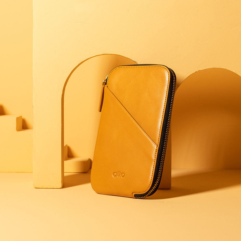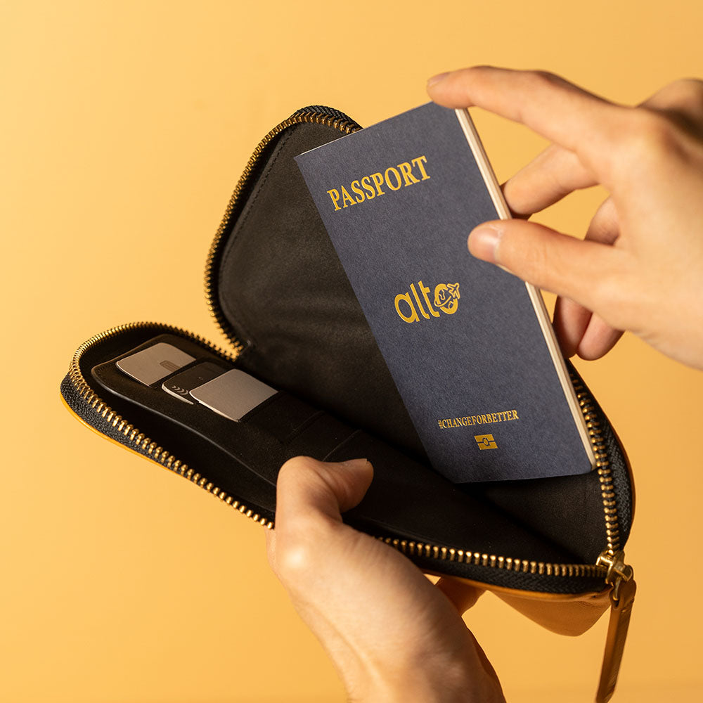 カード、紙幣、小銭、その他の小物を収納できるスマートなホルダーデザイン。旅行時にはパスポートも収納できます。