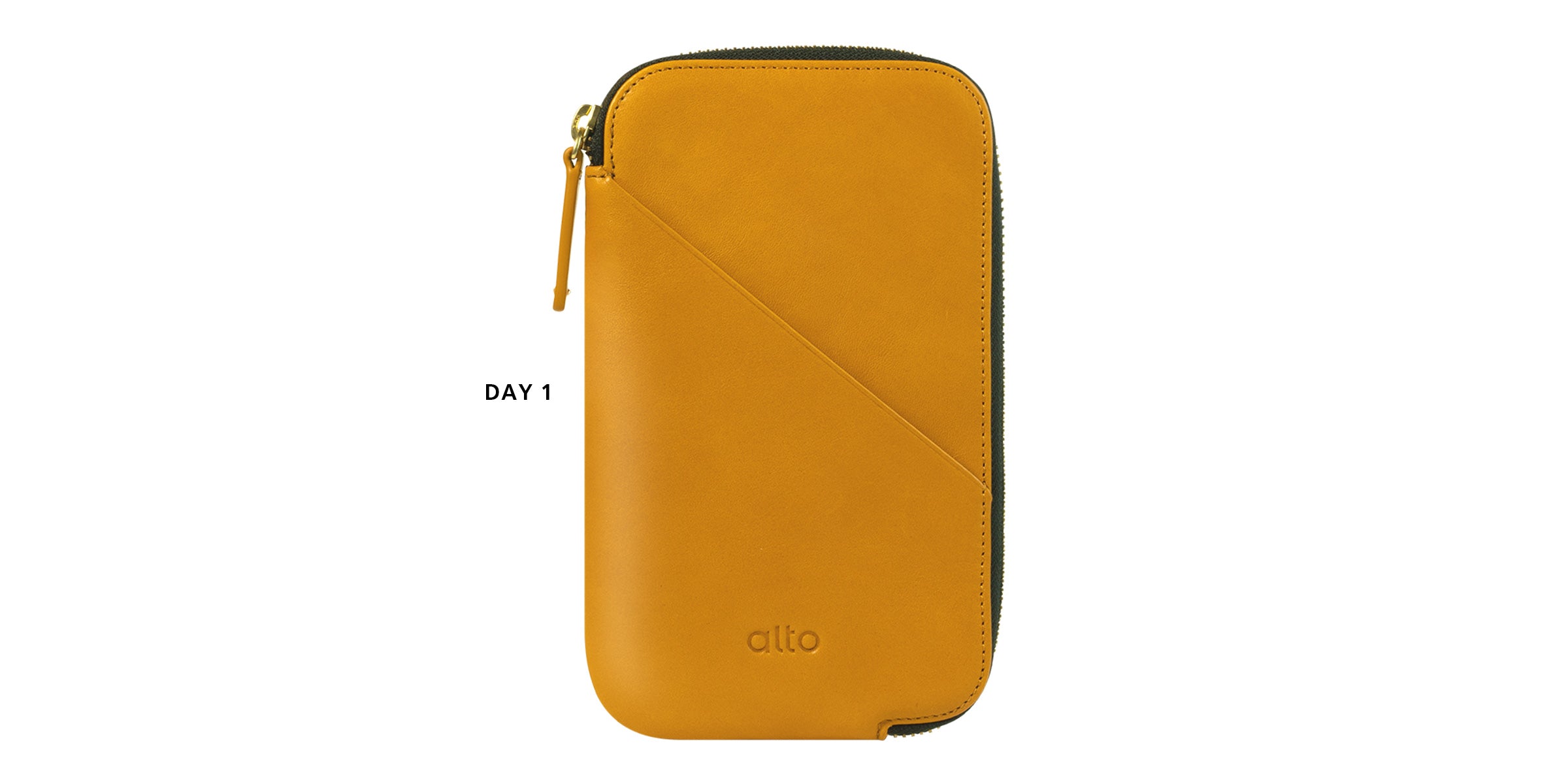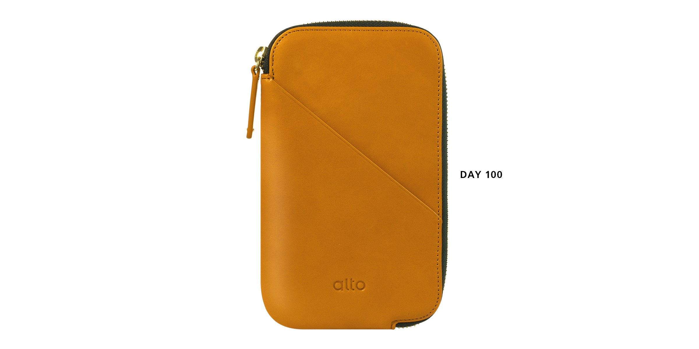 使用するにつれて、革は手の汗と油分によって化学変化を起こし、素材の色が濃くなり、独特の個性的な感触を与える経年変化が生まれます。