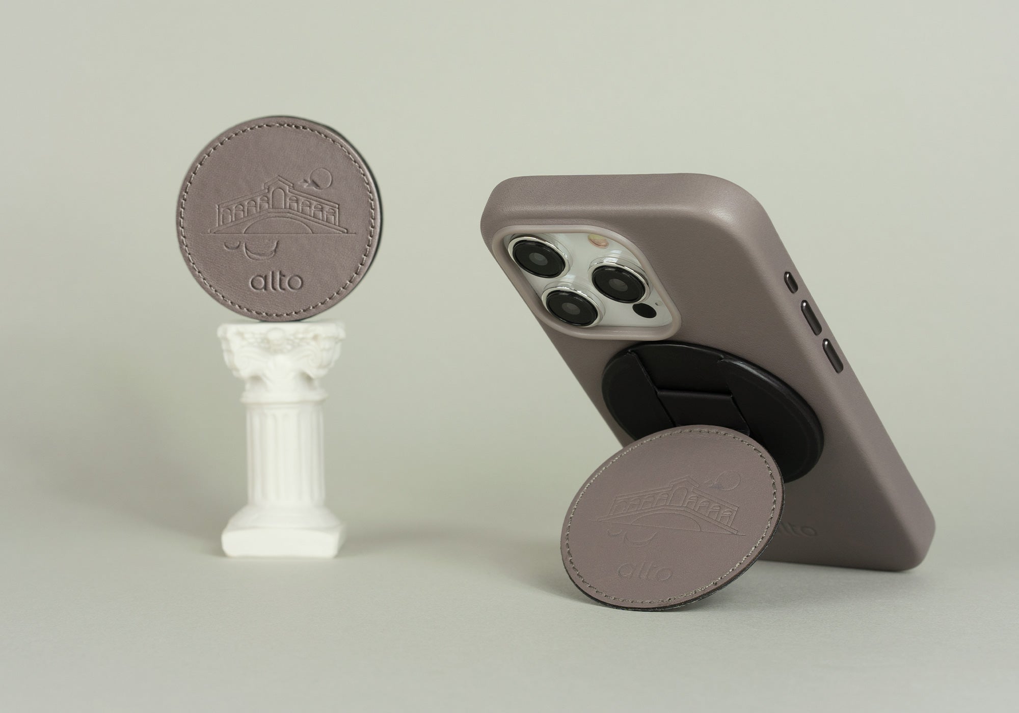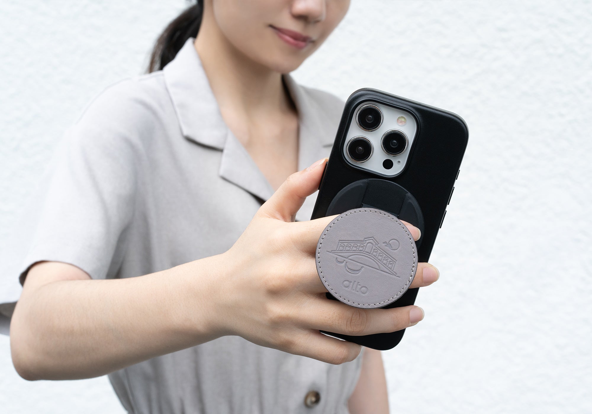 マグネット式ラウンドスタンドはリング状になっており、手に持った時の安定性を高めます。展開するとスタンドとして機能し、理想的な視野角を提供します。