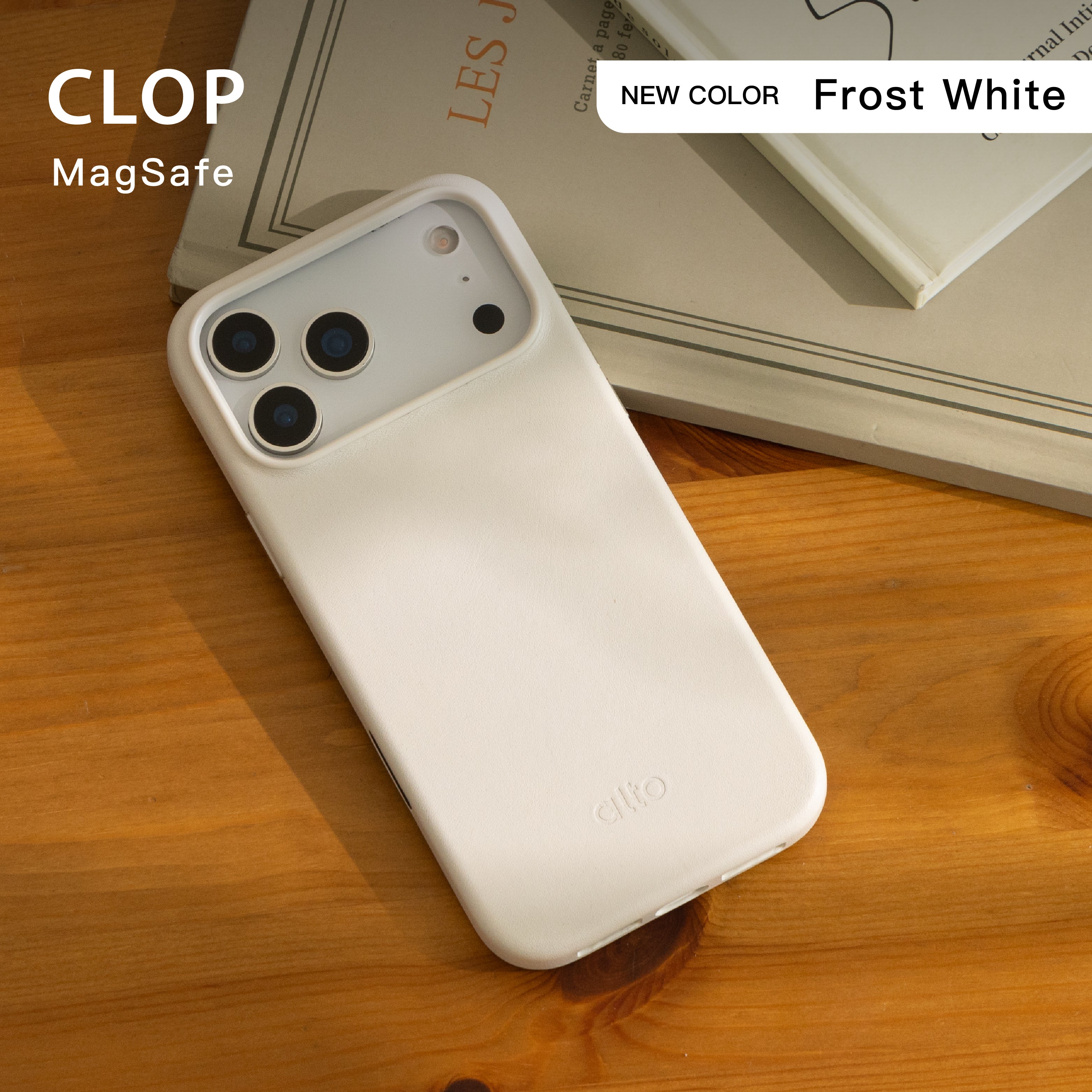The iconic and colorful Clop MagSafe Series welcomes its first-ever white leather case—delivering a sleek fusion of lightweight tech aesthetics and pure, refined texture.
