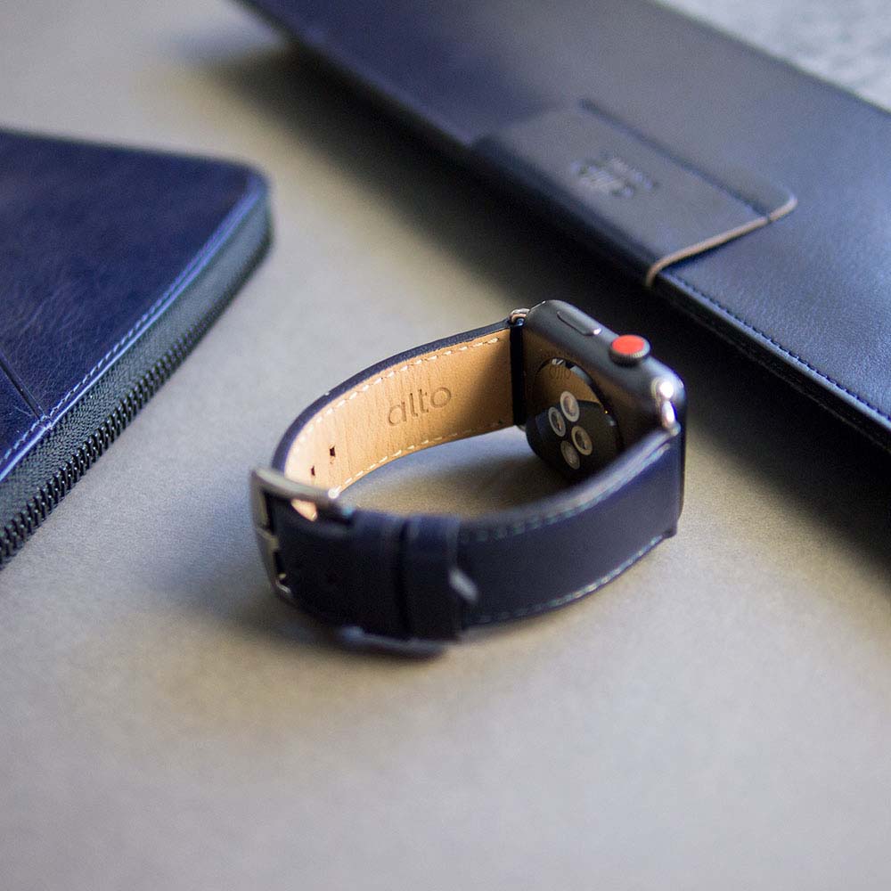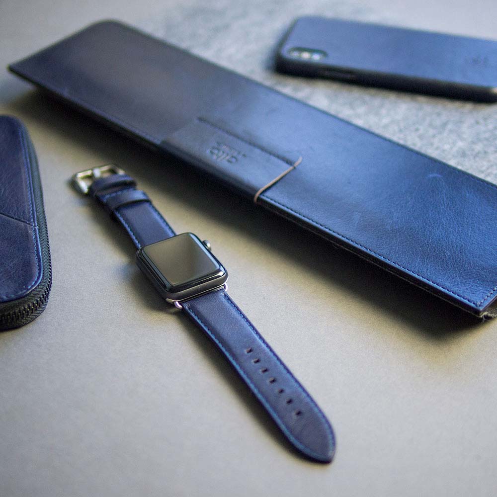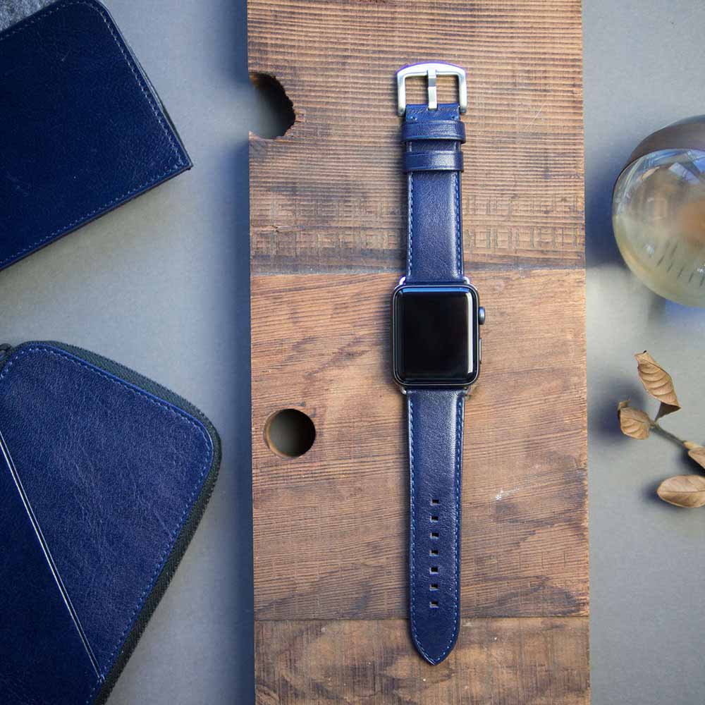 Apple Watch Leather Band 42/44/45/49mm – Navy Blue