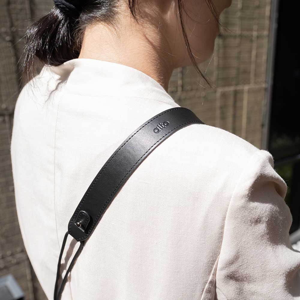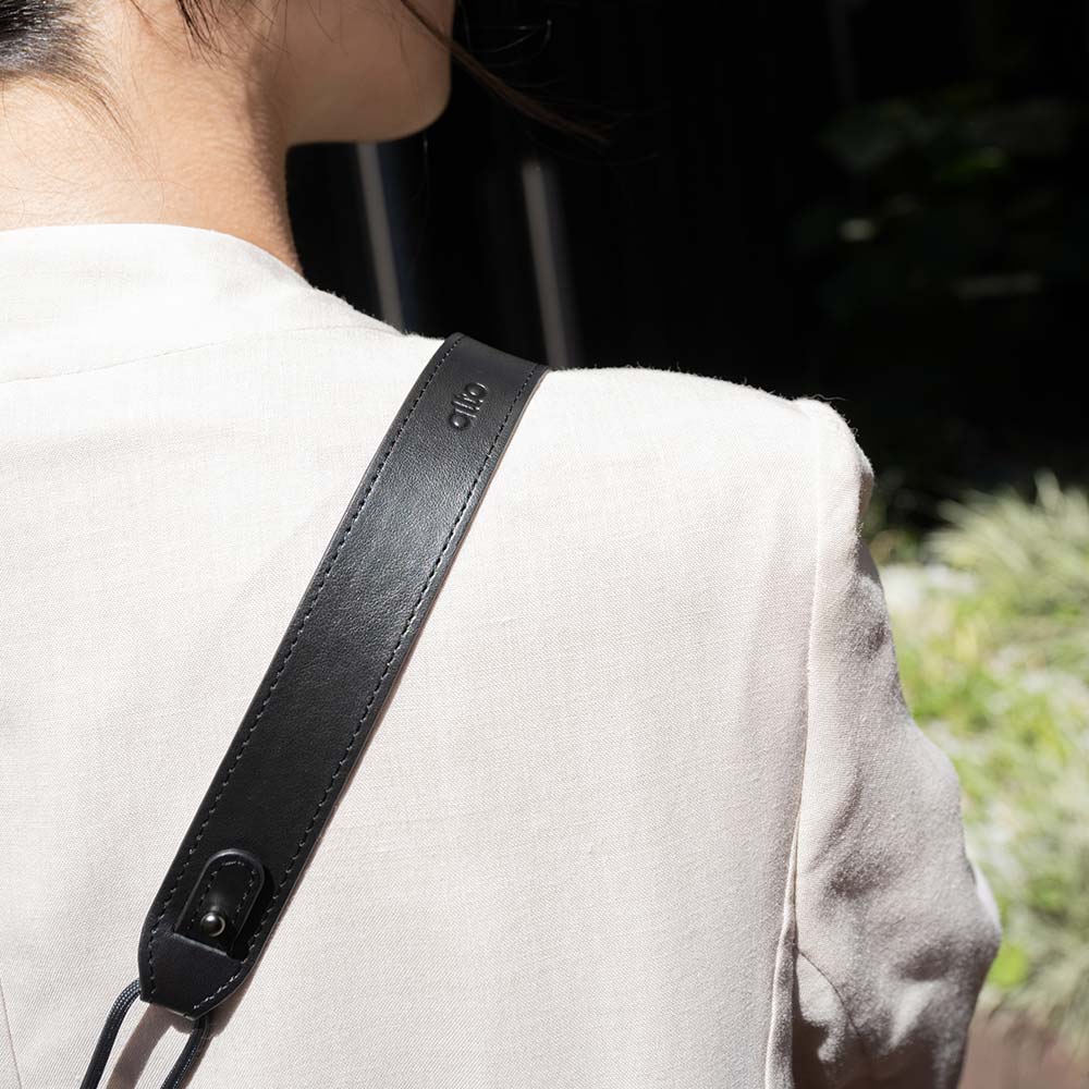 Alto strap increases the length with a reinforced stress relief effect. The skin-friendly and soft leather lessens the pressure from the mobile phone weight on the neck or shoulder.
