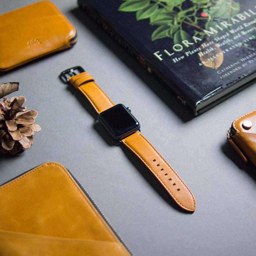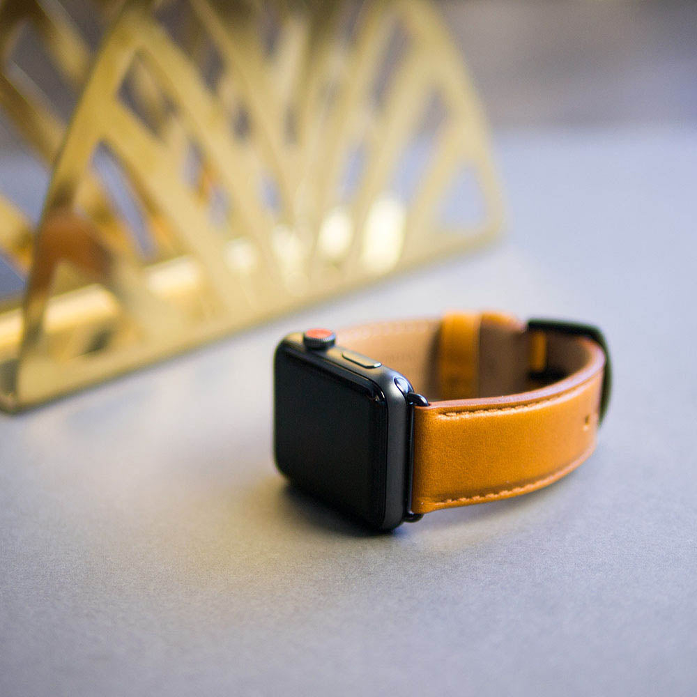 Apple Watch Leather Band 42/44/45/49mm – Caramel Brown