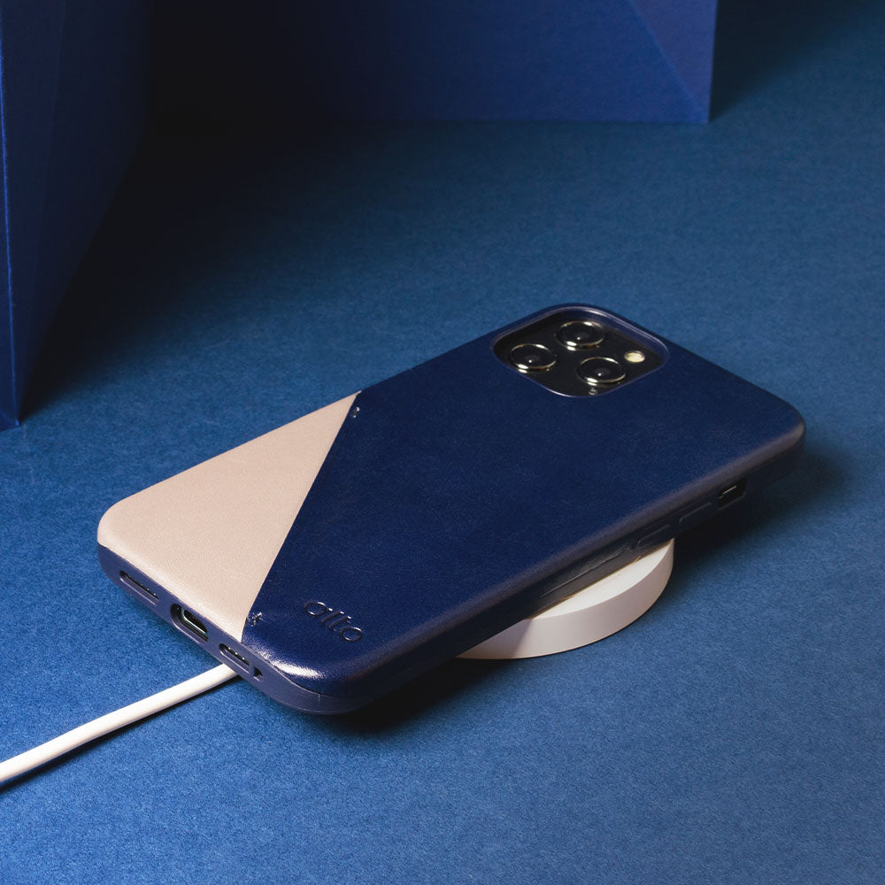 iPhone 12 Series Metro 360 Leather Wallet Case – Navy/Cement