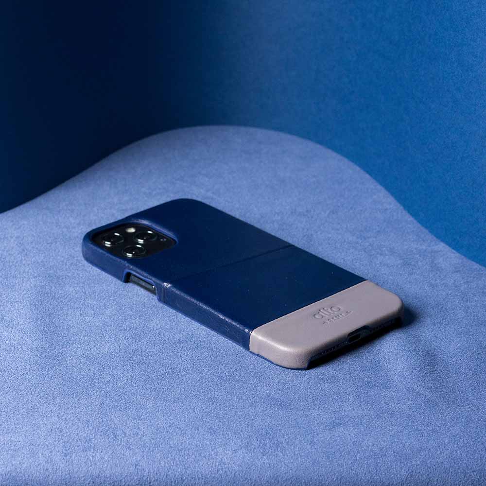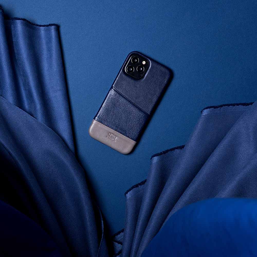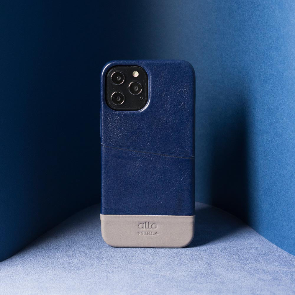 iPhone 12 Series Metro Leather Wallet Case - Navy Blue/Cement Gray