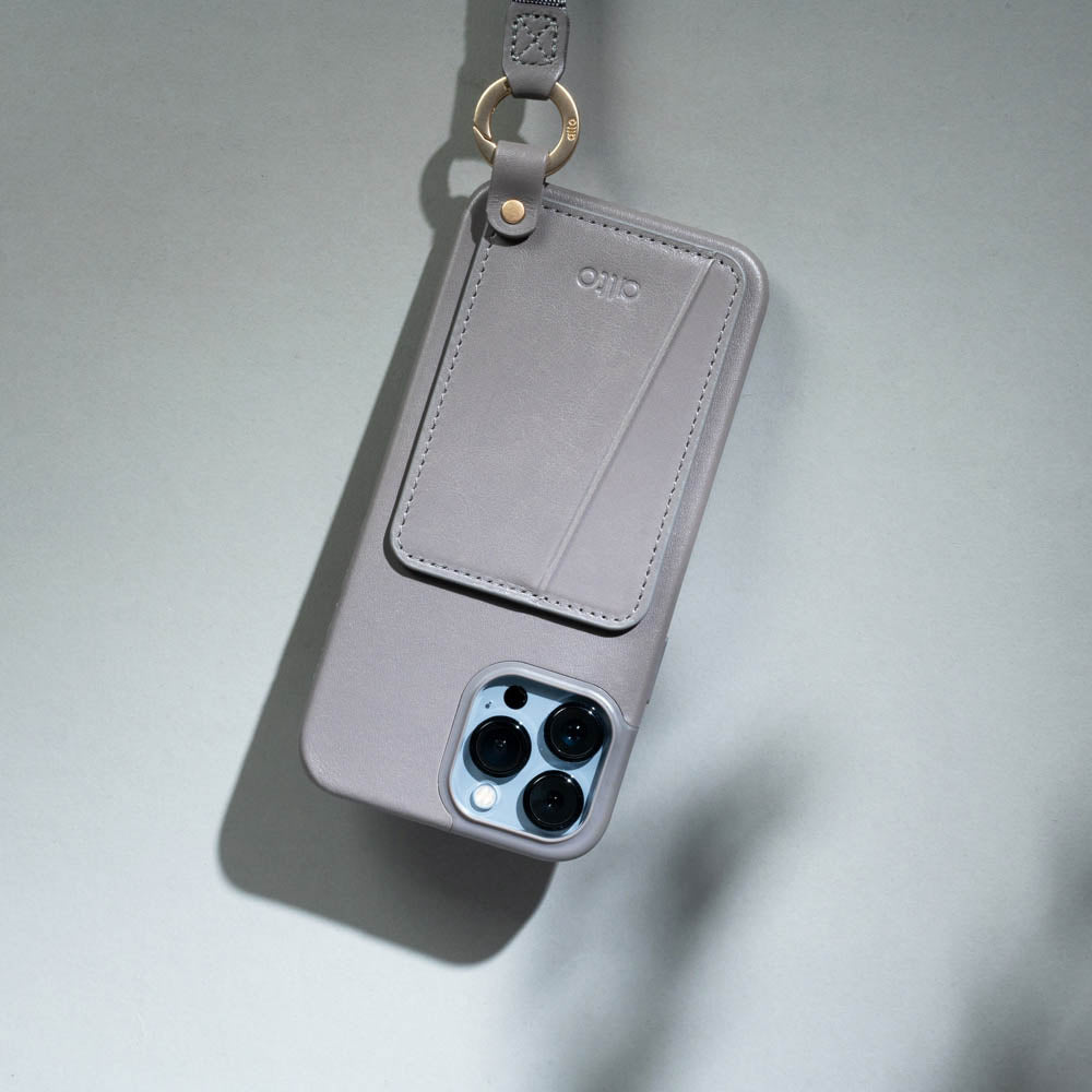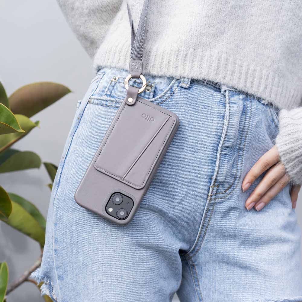 iPhone 13 Series Anello 360 Leather Lanyard Case- Cement Gray