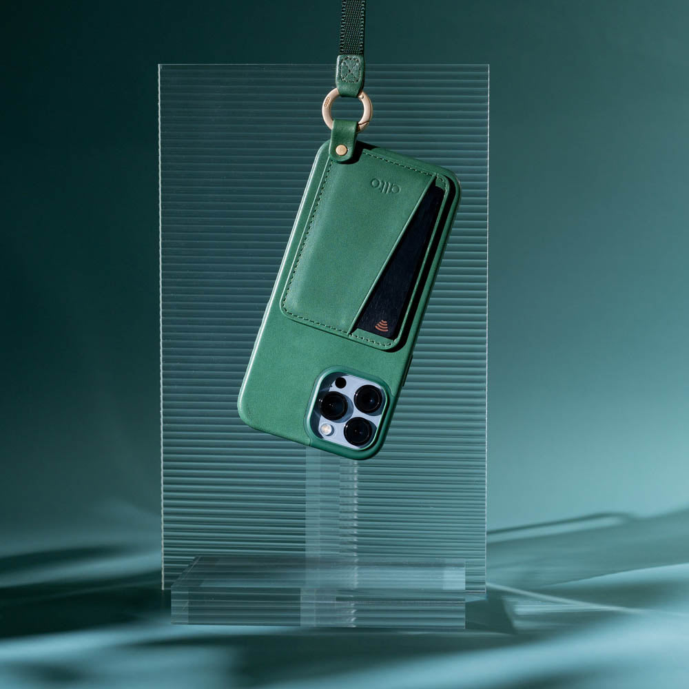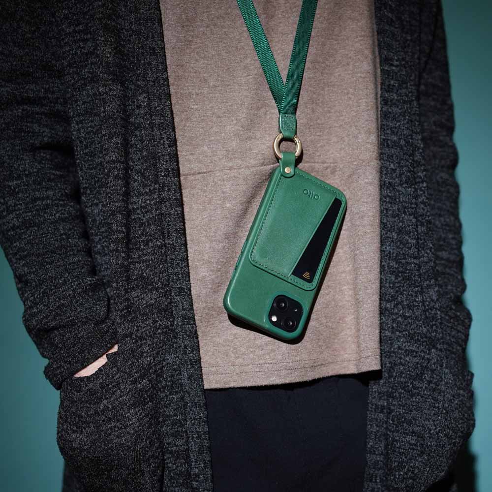 iPhone 13 Series Anello 360 Leather Lanyard Case - Forest Green