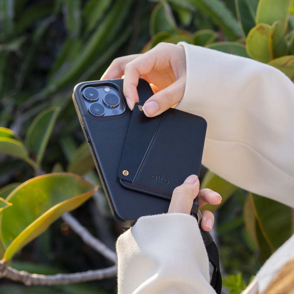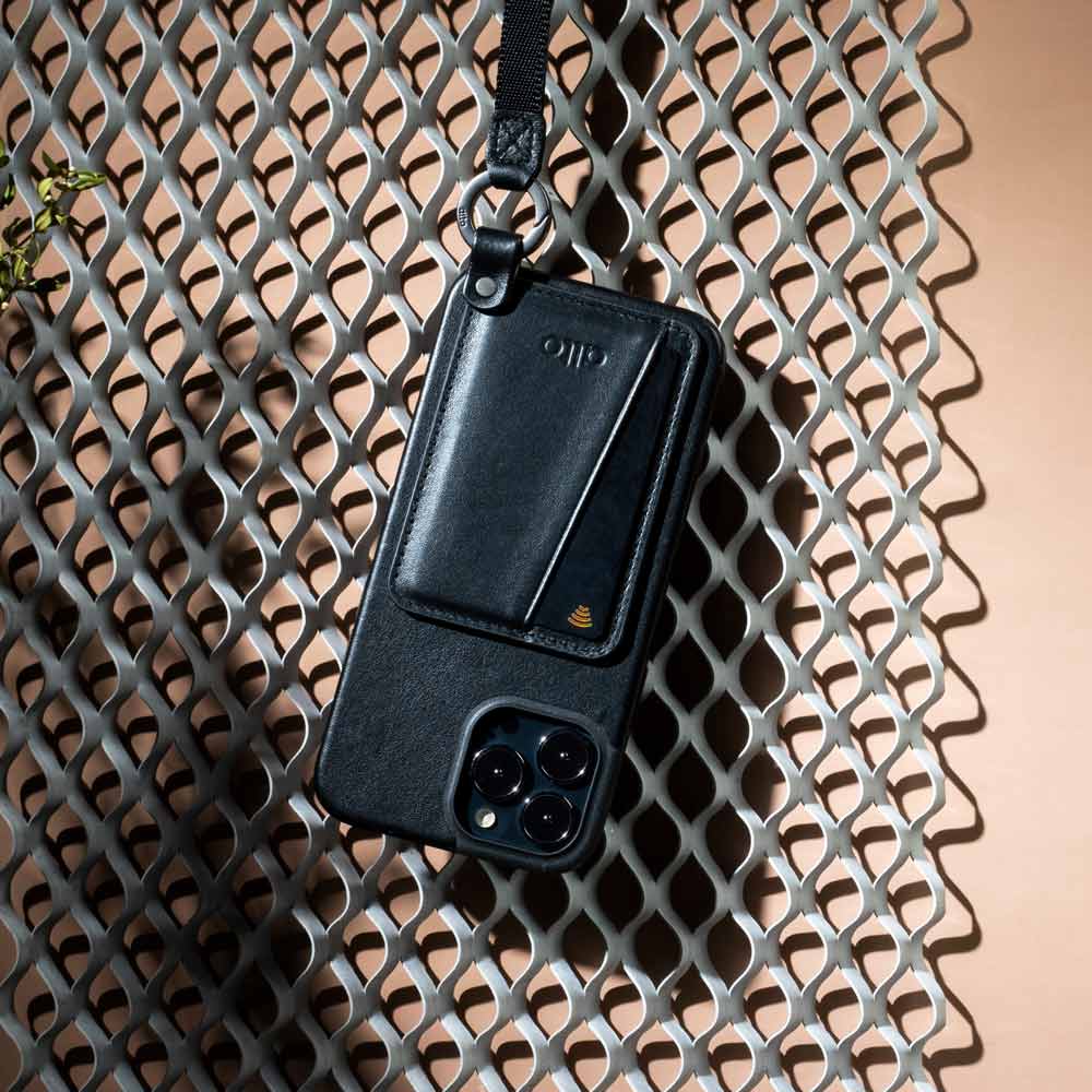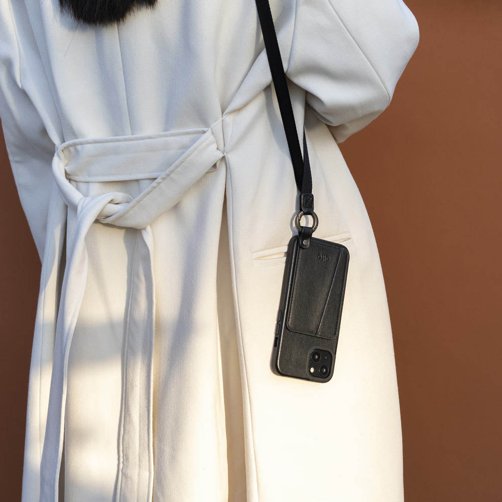 iPhone 13 Series Anello 360 Leather Lanyard Case - Raven Black