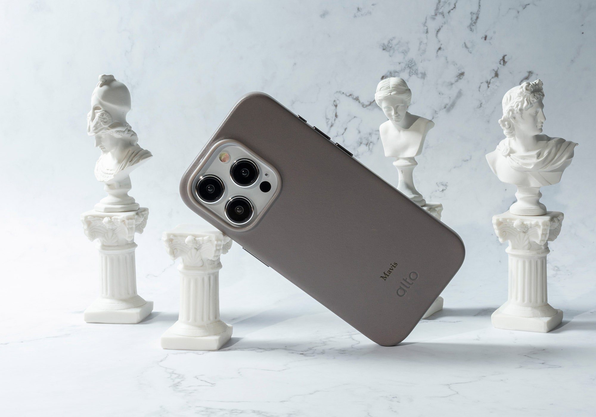 iPhone 15 Series Clop MagSafe Leather Case - Cement Gray