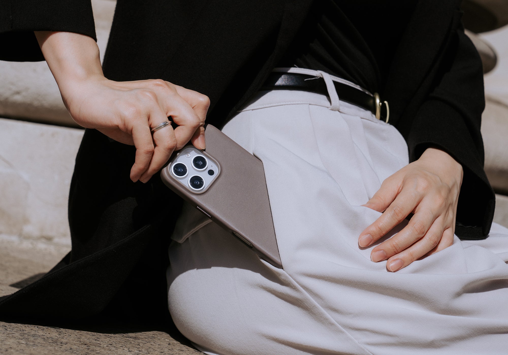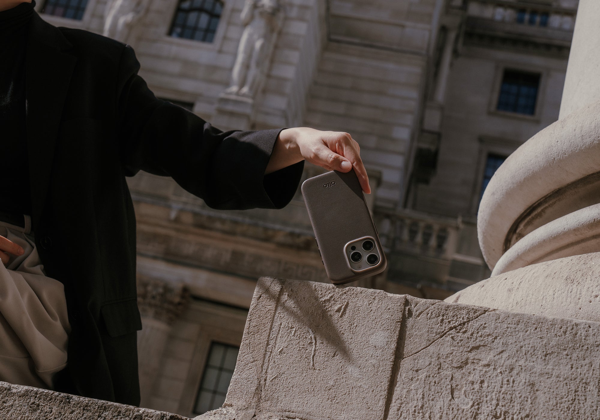 iPhone 16 Series Clop MagSafe Leather Case - Cement Gray