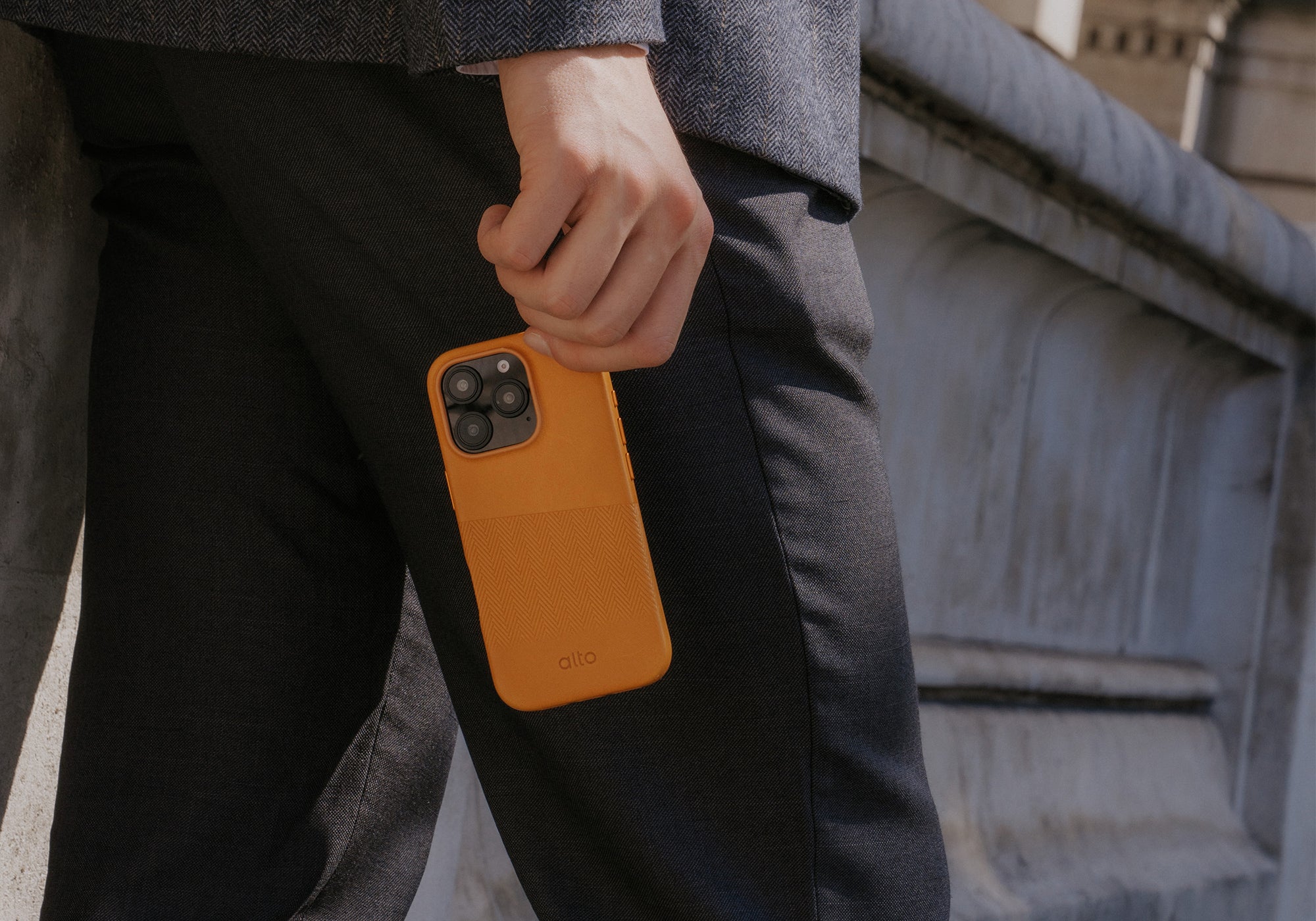The Alto Herring series phone cases feature the elegant quality of Italian leather combined with the vintage design of the herringbone pattern, showcasing exceptional taste and sophistication in every detail. They add an artistic touch and warm texture to your daily life.