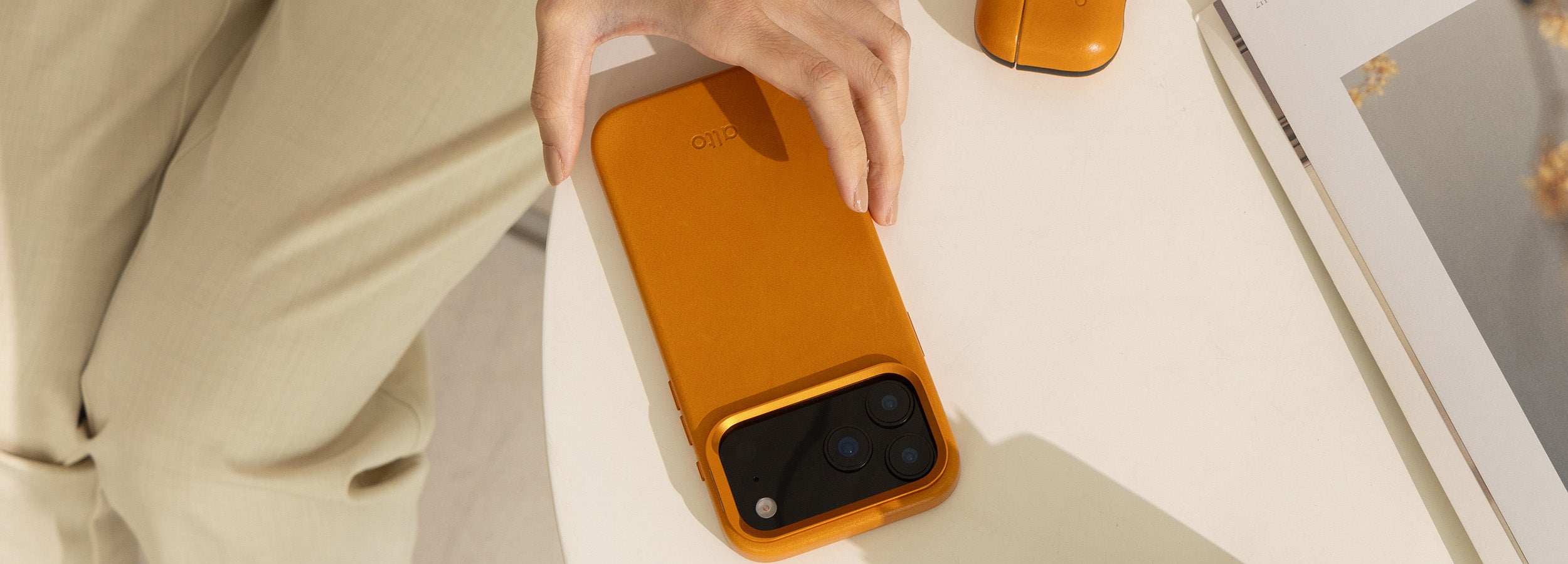 Crafted from Italian full-grain aniline leather, every case reveals a unique, natural character—subtle tones that evolve beautifully with you over time.