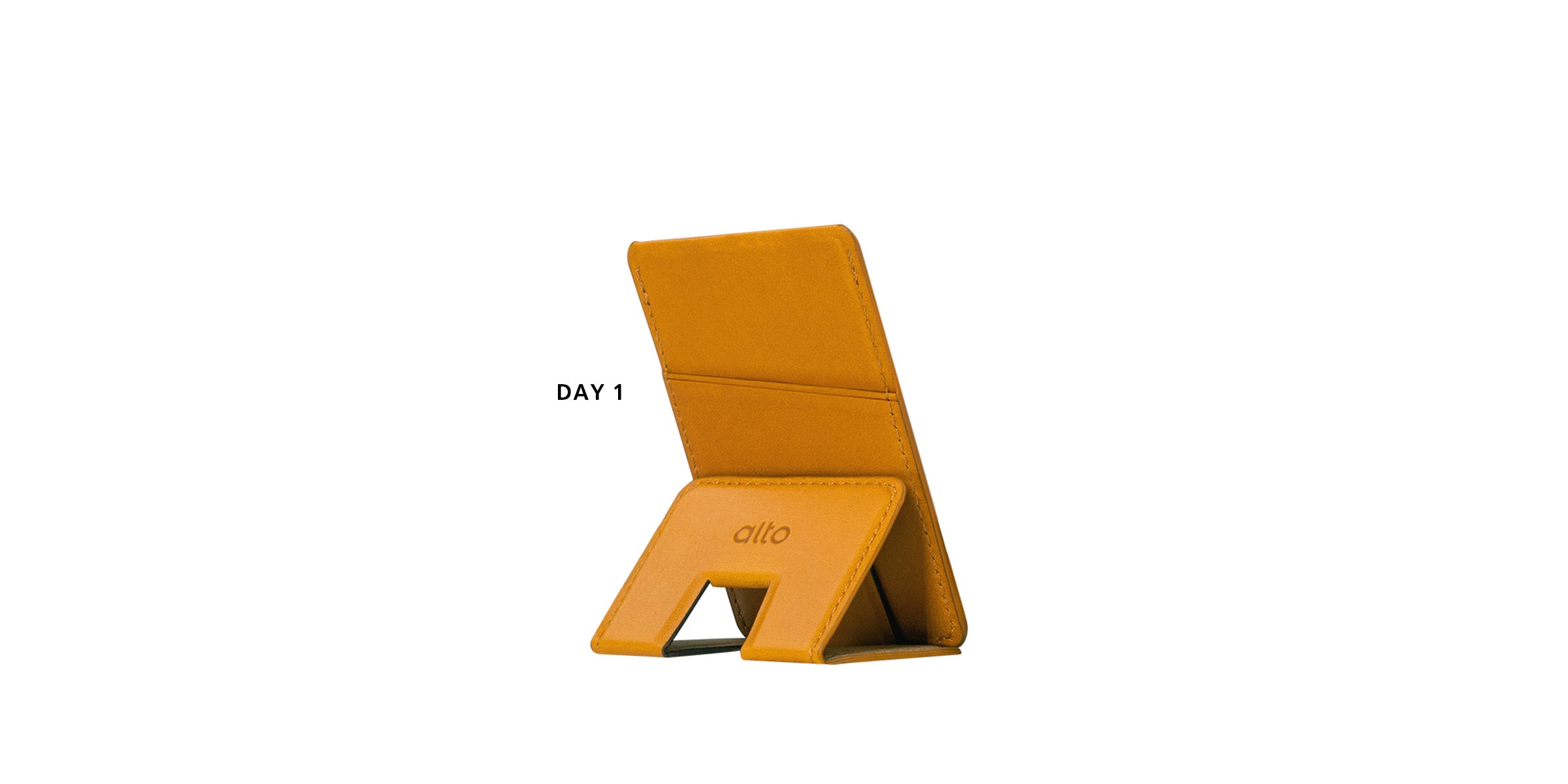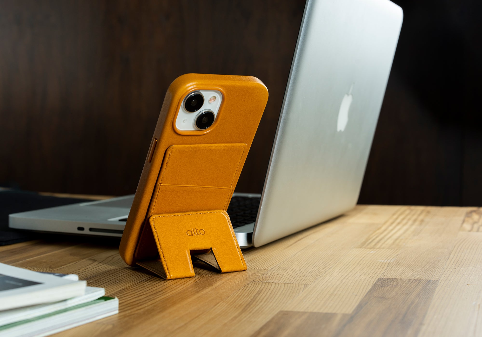 Use Alto Magnetic Wallet & Phone Stand to store cards. It transforms into a stand when opened, and it can prop up your iPhone either horizontally or vertically.