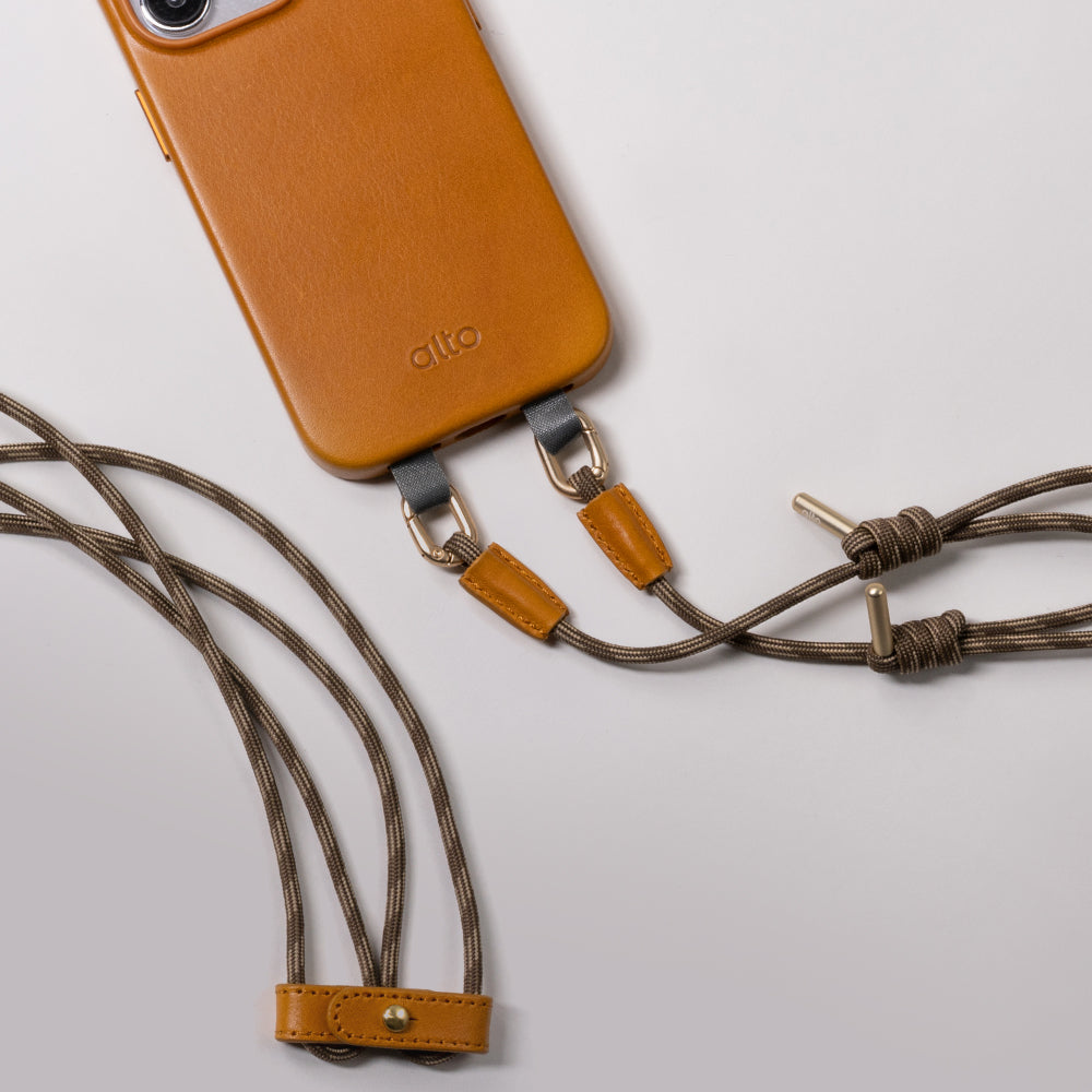 Phone Lanyards Connector + 4mm Comfort Nylon Strap – Linen Brown